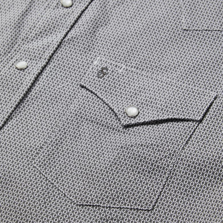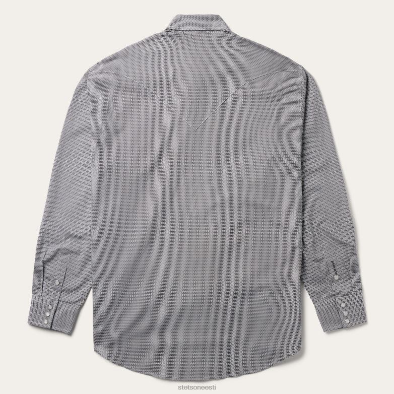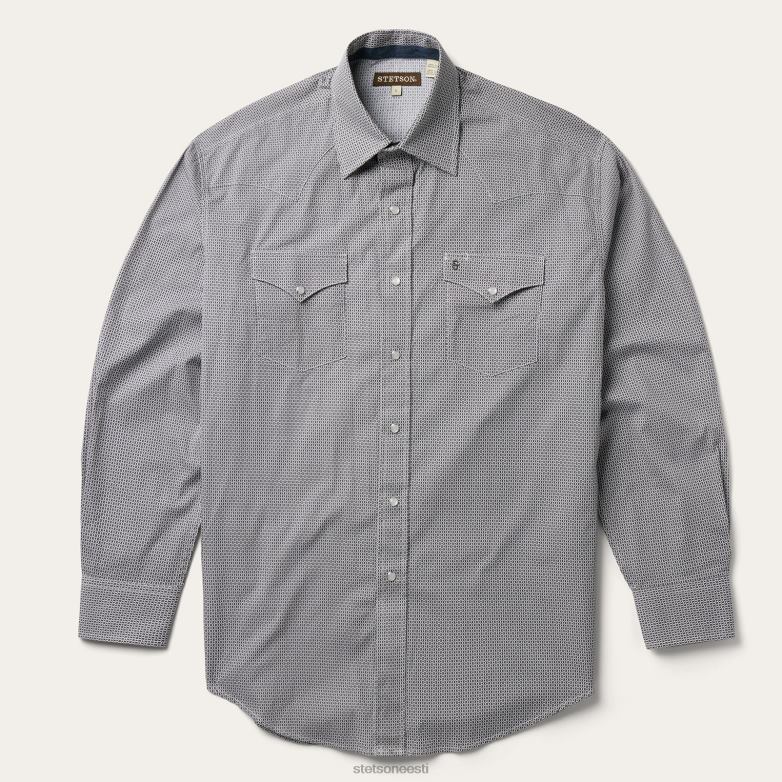 See lääne särk on valmistatud kergest puuvillasest popliinist, millel on hall geotrükis. sellel on ühepunktiline kaardus tagaosa, logoga pärlmutter ja kolm lukuga mansetit. vasakpoolsel esitaskul on logo stetson ”s” ja paremal varrukaplaadil on reljeefne logo ”stetson”. selle krae siseküljel on teksariba ja rõivast pestakse pehme tunde saamiseks, mis muutub vanusega ainult paremaks. lõigatud ääris, mis tagab moodsa istuvuse ning on valmistatud 100% puuvillast kvaliteedi ja hingavuse tagamiseks.