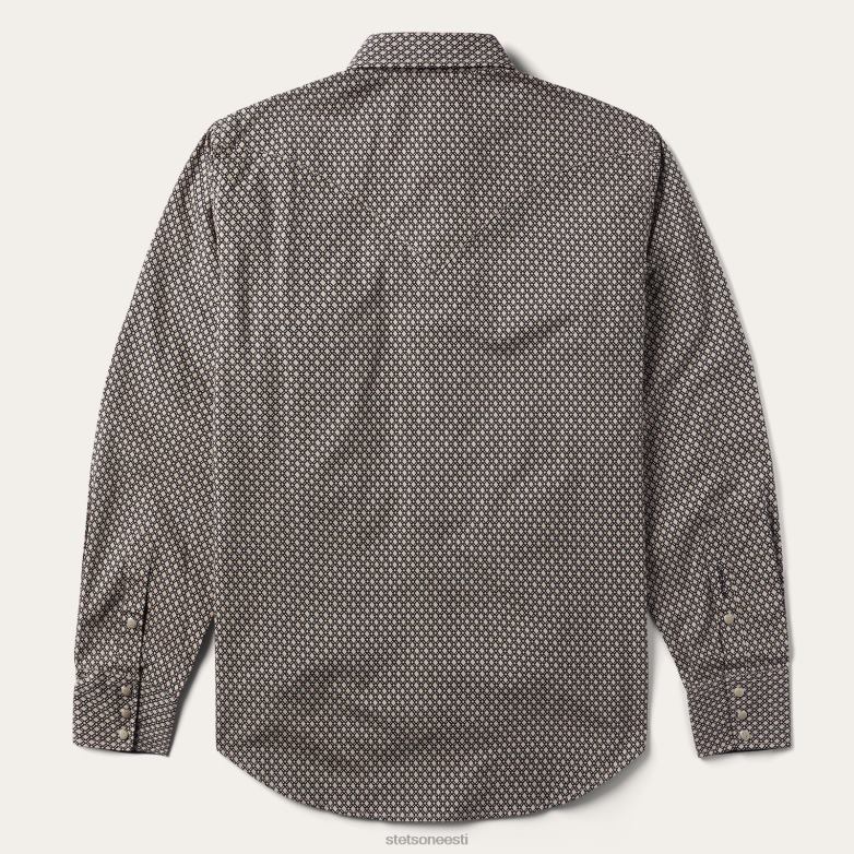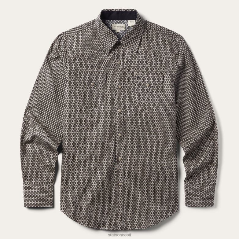 Kootud kargest puuvillasest popliinist, sellel krõpsuga läänepoolsel särgil on meie rikkaliku pruuni värvi teemanttrükk. sellel on ühepunktiline, ülisügav, kumer seljaosa, pärllogo klõpsatused. kontrastne must popliin sisekaunistusega, stetson ”s” reljeefne vasak esitaskus ja stetson reljeef paremal varrukaplaadil. lõigatud ääris, mis tagab moodsa istuvuse.
