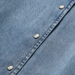 See vapustav lääne stiilis pluus on valmistatud pehmest, vastupidavast 100% lüotselli teksariidest. ilma kraeta, sellel on meelitav v-kaelus ja klassikaline täisklõpsuga esikinnis. keerukad mere- ja rukkilillesinised tikitud detailid ümbritsevad küünarnuki pikkuste raglaanvarrukate elastseid mansette ja mugav istuvus võimaldab hõlpsat liigutamist.