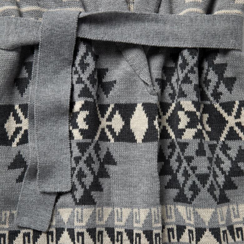 Üliplüüsis, see paksu kootud rätikkraega edelapoolse mustriga kampsun on töökindel soojuse ja mugavuse tagamiseks. See on mitmekülgne ja meelitav – selle tüki saab kinnitada vööga või nööbida oma lemmikteksadele, et saada poleeritud talvine välimus.