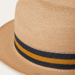 See väikese äärega müts õhkub klassikalist stiili ja sobib nii kesklinnas kui ka rannas. see on valmistatud kergest kanepist ja kahetoonilise triibulise mütsipaelaga. sisemuses hoiab dri-lexi higipael teid jahedana ja kuivana.
