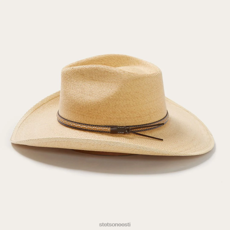 Saeveski palmilehtedest läänemüts on valmistatud palmilehtede õlgedest ning sellel on sisemine dri-lexi higipael ja dekoratiivne nahast mütsirihm. palmilehe õled.