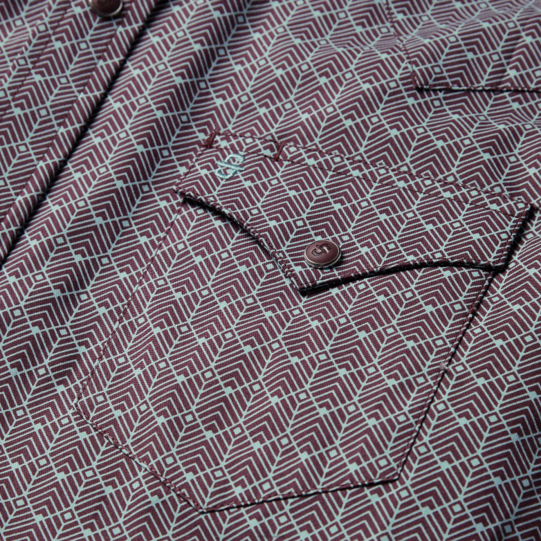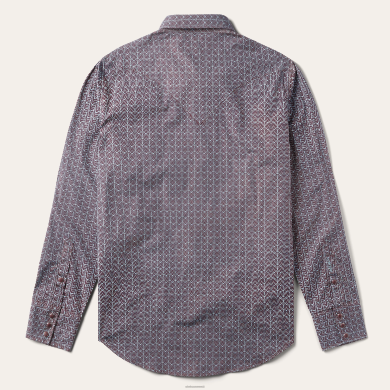 See lääne särk on valmistatud kargest 100% puuvillasest popliinist ja sellel on julge geomeetriline ruudustik. Klassikalisel nööpkinnitusega esiküljel on kahepunktiline tagumine ike, kaks esitaskut ühe punkti kumerate taskuklappidega ja kolme klõpsuga mansetid. lisadetailide hulka kuuluvad pärllogo klõpsud. kontrastne kaunistus, stetson ”s” reljeefses vasakpoolses taskus ja stetson reljeefses paremas varrukas. lõigatud viimistlus, mis tagab moodsa sobivuse.