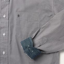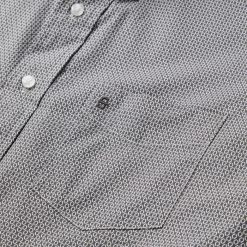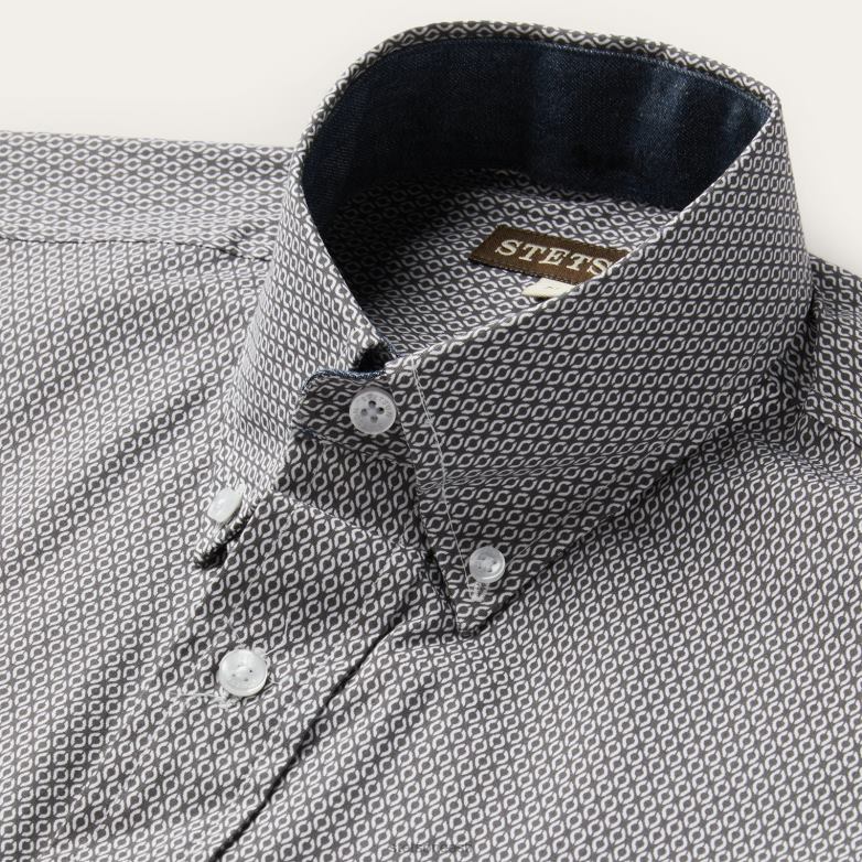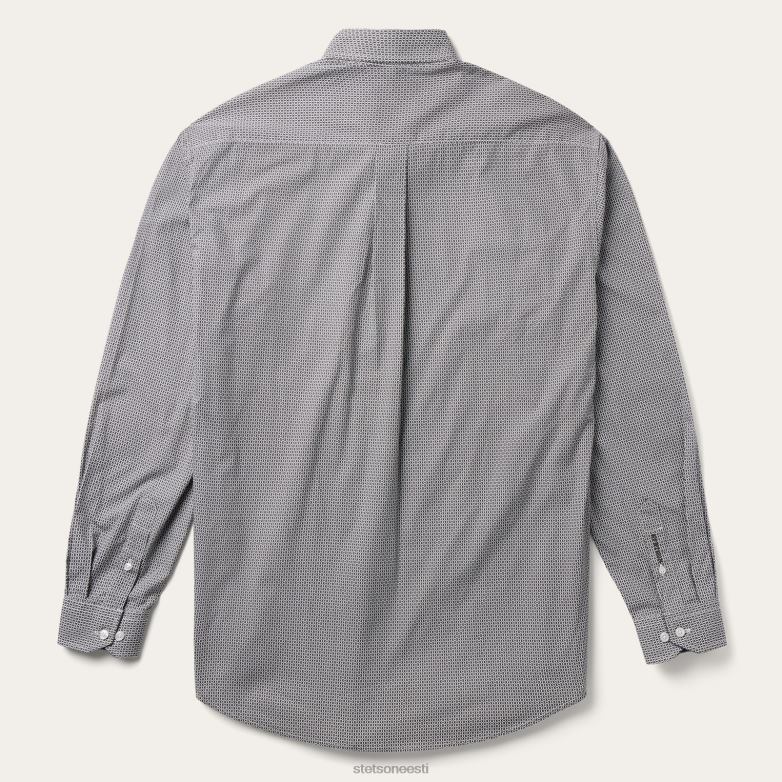 See nööbitav särk on valmistatud kergest puuvillasest popliinist, millel on hall geograafiline muster. sellel on sirge voldiga tagumine ike, vasakpoolsel esitaskul on logo stetson ”s” ja paremal varrukaplaadil on reljeefne kiri stetson. sellel on teksariidest siseviimistlus ja kahe nupuga reguleeritav kaldserva mansett. klassikaline nööpide esiosa on viimistletud pärlitega virnastatud logonööpidega ja see on valmistatud 100% puuvillast, et tagada kvaliteet, hingavus ja tunne, mis muutub vanusega ainult paremaks.