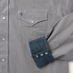 See lääne särk on valmistatud kergest puuvillasest popliinist, millel on hall geotrükis. sellel on ühepunktiline kaardus tagaosa, logoga pärlmutter ja kolm lukuga mansetit. vasakpoolsel esitaskul on logo stetson ”s” ja paremal varrukaplaadil on reljeefne logo ”stetson”. selle krae siseküljel on teksariba ja rõivast pestakse pehme tunde saamiseks, mis muutub vanusega ainult paremaks. lõigatud ääris, mis tagab moodsa istuvuse ning on valmistatud 100% puuvillast kvaliteedi ja hingavuse tagamiseks.