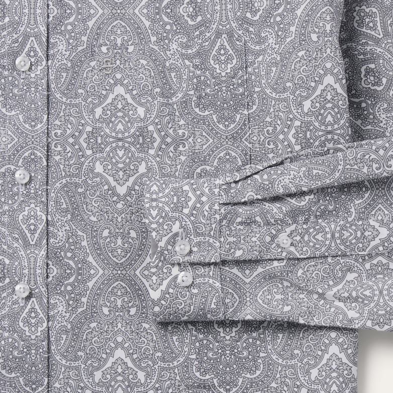 See nööbiga särk on valmistatud 100% puuvillasest popliinist, mis on kootud meie mägismaa paisley trükiga. Mõeldud lõdvemaks, klassikaliseks istumiseks, krae siseküljel on tugevdatud teksaribaga. nööbitava krae ja kahe nööbiga mansettidega särk, mida saab hõlpsasti üles või alla riietada.