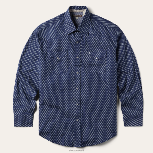 Kõrgest puuvillasest popliinist kootud see krõpsuga lääne särk sisaldab meie allover polaris geoprinti rikkalikus sinises värvitoonis. sellel on ühepunktiline, ülisügav, kumer seljaosa, pärllogo klõpsatused. kontrastne khakivärvi popliin siseviimistluses, stetson ”s” on reljeefne vasakpoolses esitaskus ja stetson reljeefsus paremal varrukal. lõigatud ääris, mis tagab moodsa istuvuse.