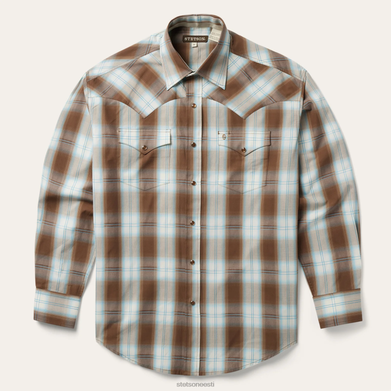 See lääne särk on valmistatud rikkaliku lõngaga värvitud ombre-liivapleedist, millel on pilkupüüdev satiinõmblus. sellel on ühepunktiline ülisügav kaardus tagaosa, pärlmutterlogoga esiosa ja kolm lukuga mansetti. vasakpoolset esitaskut kaunistab stetson ”s” logo ja paremat varrukataskut on reljeefne kiri ”stetson”. sellel on mitmevärvilised siseviimistluskangad ja see on valmistatud 100% puuvillast kvaliteedi, hingavuse ja mugavuse tagamiseks.
