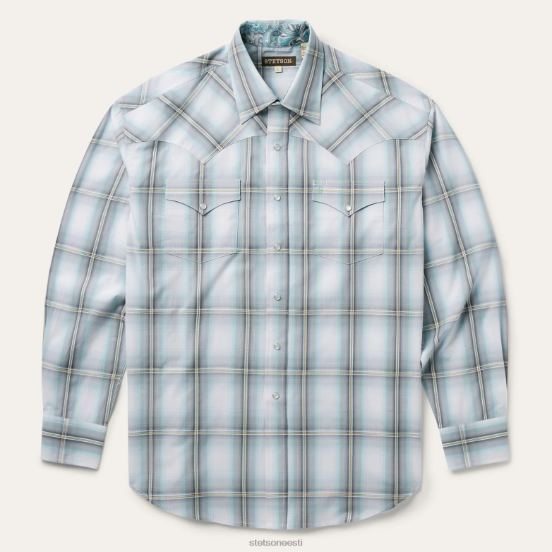 See lääne särk on valmistatud halliks värvitud satiinpistega hombre ruudulisest lõngast. sellel on ühepunktiline ülisügav kumer tagaosa, logoga eesmine ja kolm lukuga mansetti. vasakpoolsesse esitaskusse on pressitud stetsoni ”s” logo ja paremale varrukaplaadile on pressitud ”stetson”. sellel on kontrastsus siseviimistlusega ja see on valmistatud 100% puuvillast kvaliteedi, hingavuse ja mugavuse tagamiseks.