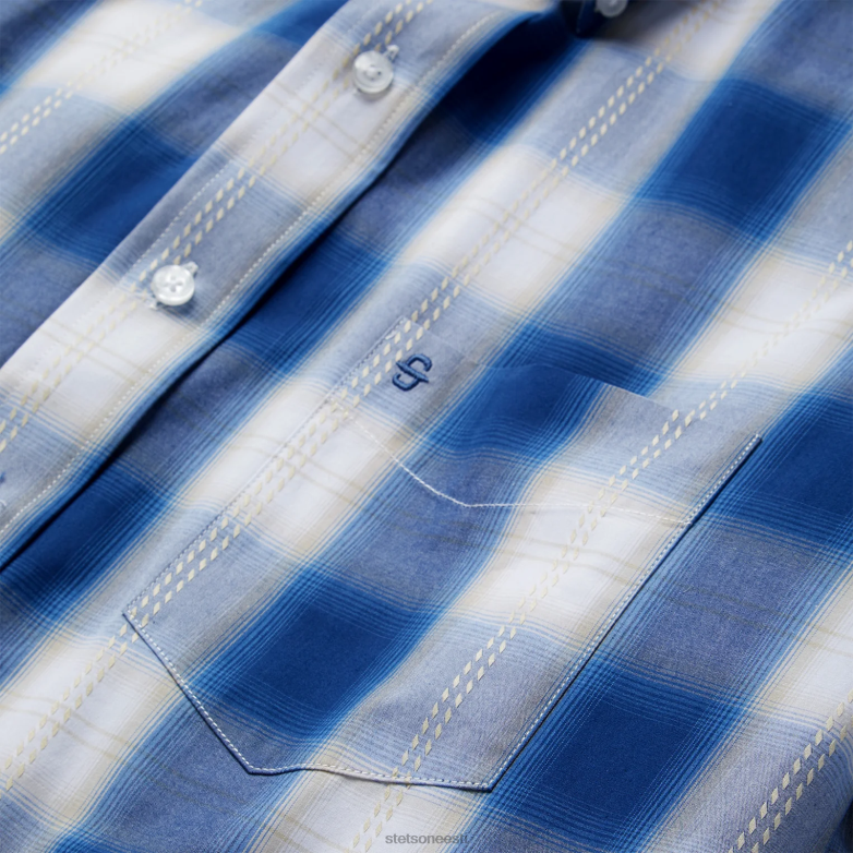 See stiilne lühikeste varrukatega särk on valmistatud 100% puuvillast ja sellel on rikkalik, lõngaga värvitud tumekuldne hombre pleed, millel on pilkupüüdev satiinõmblus. sellel on sirge voldiga tagumine ike, vasakpoolses esitaskus on reljeefne kiri stetson ”s”, paremal varrukaplaadil on reljeefne kiri ”stetson” ja kontrastne siseviimistlus, mis pakub peent kontrasti. Klassikalise nööbi esiküljel on logo virnastatud pärlinööbid, samal ajal kui kahe nööbiga kaetud serva mansetti saab soovitud sobivuse järgi reguleerida.