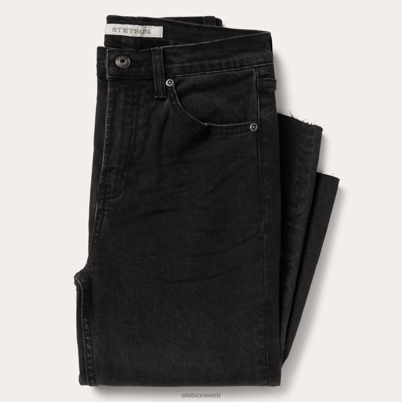 Need mustad 915 kõrge kõrgusega sirge istumisega crop teksad on valmistatud puuvillasest teksast, mis on mugavuse tagamiseks piisavalt veniv. neil on kontuuriga vöökoht, mis asetseb vahetult vööst allpool, 5-taskuline ja töötlemata ääris, mis on pahkluuni kärbitud. lihtsad tagataskud on viimistletud Stetsoni kaubamärgiga nööpide, neetide ja tõmblukuga ning teksapüksid on viimistletud õrnalt lihvitud ja vurrdetailidega, mis annavad elava välimuse.