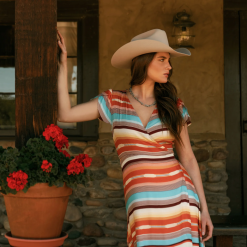 See särtsakas ja stiilne ümbriskleit on valmistatud pehmest ja kergest 100% viskoosist ning sellel on rikkalik ja värviline päikeseloojangu serape printimine. ümbrisel esiküljel on iseseisev sulgur ning selja ja rinnatüki noolemängud, mis tagavad meelitava istuvuse. lühikesed tulbivarrukad pakuvad täpselt õiget katvust, samas kui erksavärviline muster annab palju läänest inspireeritud stiili.