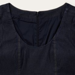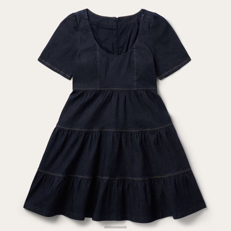 See tume teksakleit on stiilne ja mitmekülgne iga garderoobi jaoks. See kleit on valmistatud pehmest puuvillasegust, mis on liikumise hõlbustamiseks vaid veidi veniv, ja seda on rõivas pestud, et tunne oleks mugav. sellel on printsessi õmblemisega impeerium pihik ja kolmeastmeline seelik, lühikesed varrukad, mis on õlgadele koondatud, ja nähtamatu tagatõmblukk, mis tagab täiusliku istuvuse. kontrastsed ülaõmblused lisavad autentset läänest inspireeritud stiili, samas kui põlveni ulatuv pikkus jätab palju ruumi läänelikele saabastele.
