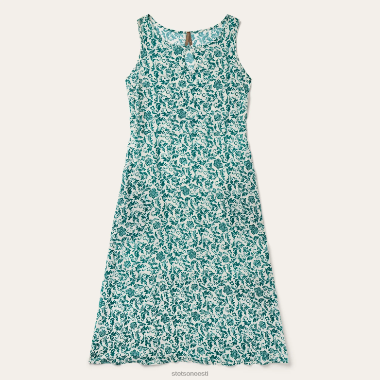 See stiilne, mitmekülgne varrukateta kleit on valmistatud 100% viskoosist, millel on kerge ja õhuline tunne ning erksavärviline roheline ja valge üleni nefriitlilletrükk. ümar kaelus sisaldab võtmeauk, mis annab ahvatluse vihje. liibuv pihik koos noolemänguga rinnal ja pikk seelik koos küljeõmbluste taskutega on ühtaegu meelitavad ja naiselikud, samas kui küljeõmbluse tõmblukk tagab kindla istuvuse. sellel on lihtne elegants ja pilkupüüdev värv, mis muudab selle ideaalseks õhtuseks ja igapäevaseks kandmiseks.