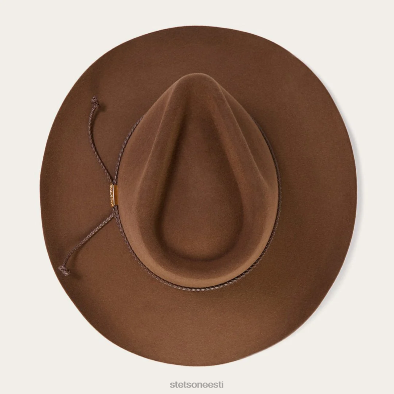 Seda kauboikübarat iseloomustavad pisarkroon ja peenelt kumer äär (algselt mõeldud selleks, et hoida mütsid kandja lasso eest). autentsete detailide hulka kuuluvad punutud lint stetsoni kaubamärgiga mütsinõelaga ja ilus illustratsioon krooni sees. sisemuses tagab pruun nahast higipael, et tunnete end jahedana ja mugavalt. valmistatud USA-s kvaliteetsest 6x karusnahast vildist.