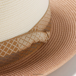 andover milan fedora on valmistatud tugevast viimistlusest, Florentine milan õlgedest ning sellel on veisenahast sisemine higipael ja mustriline grosgrain mütsipael.