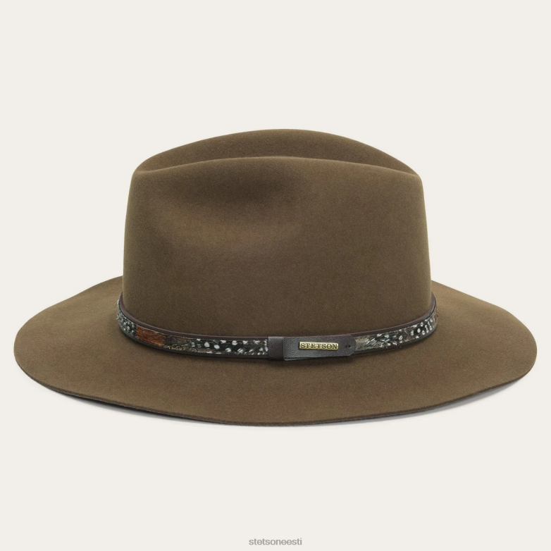 Üks pilk Jacksonile paneb sind unistama, et pääsed õue, rajalt maha ja loodusesse. armastatud nii oma praktilisuse kui ka ainulaadse stiili poolest, on see ideaalne müts, mida tõmmata enne tundmatusse suundumist. valmistatud kvaliteetse vildi ja pehme meriinovilla segust, see on veekindel, kerge ja kergesti hooldatav. värvitud kahes ilusas looduse soojusest inspireeritud toonis – pronksis ja salvei –, sellel on õrn näpuotsaga kroon ja peenike servaga ääris. korraga diskreetne ja omanäoline pilkupüüdev mütsipael, millel on aktsent naturaalsete vutisulgedega, mis annavad peene annuse tekstuuri ja värvi. Jackson on välistingimustes kasutamiseks mõeldud varustus, mis on loodud kestma, parim valik mäkke suundumiseks, telkimiseks ja muuks.